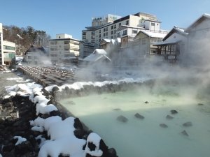 - Manza Onsen – Sitting high on Mount Shirane, Manza Onsen boasts sulphuric thermal waters. It is a great place to go to if you want to try dipping in an outdoor bath surrounded by snow.